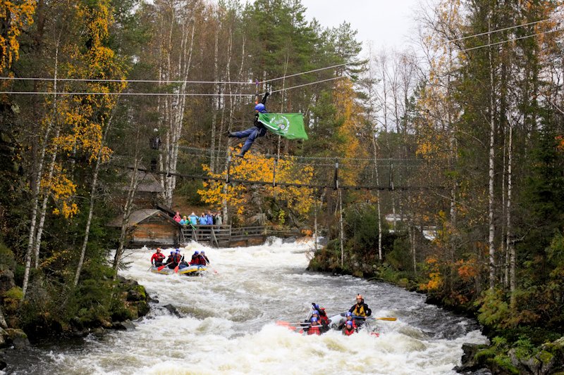 Kauden 2016 uutuutena meillä on tarjota 80 metriä pitkä köysiliuku Myllykoskella! Tämä onkin oivallinen lisä Villi-K18 koskenlaskuun, pääset kokemaan Oulangan kansallispuistoa maalta, vedestä ja ilmasta! Jos koskenlasku ei ole sinun juttusi on köysiliuku mahdollista järjestää myös erikseen.