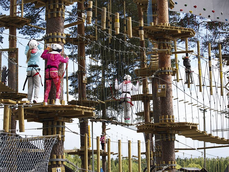 Haastavin rata kulkee jopa 12m korkeudessa. Kiipeilypuiston sydäminä toimivat kaksi yli 200m pitkää vaijeriliukua jotka lähtevät Werneri Parkin yläpuolelta ja päätyvät aina perherinteeseen asti. Radoillamme on ZAZA-2 jatkuvavarmisteinen turvajärjestelmä joka on helppokäyttöinen ja aukoton. Asiakas on kytkettynä turvavaijeriin radan alusta radan loppuun.